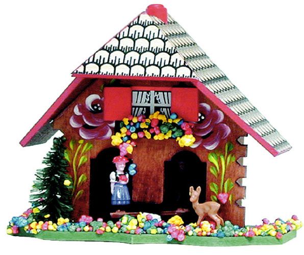- Barometr v podobě pestrobarevné dřevěné chaloupky.
