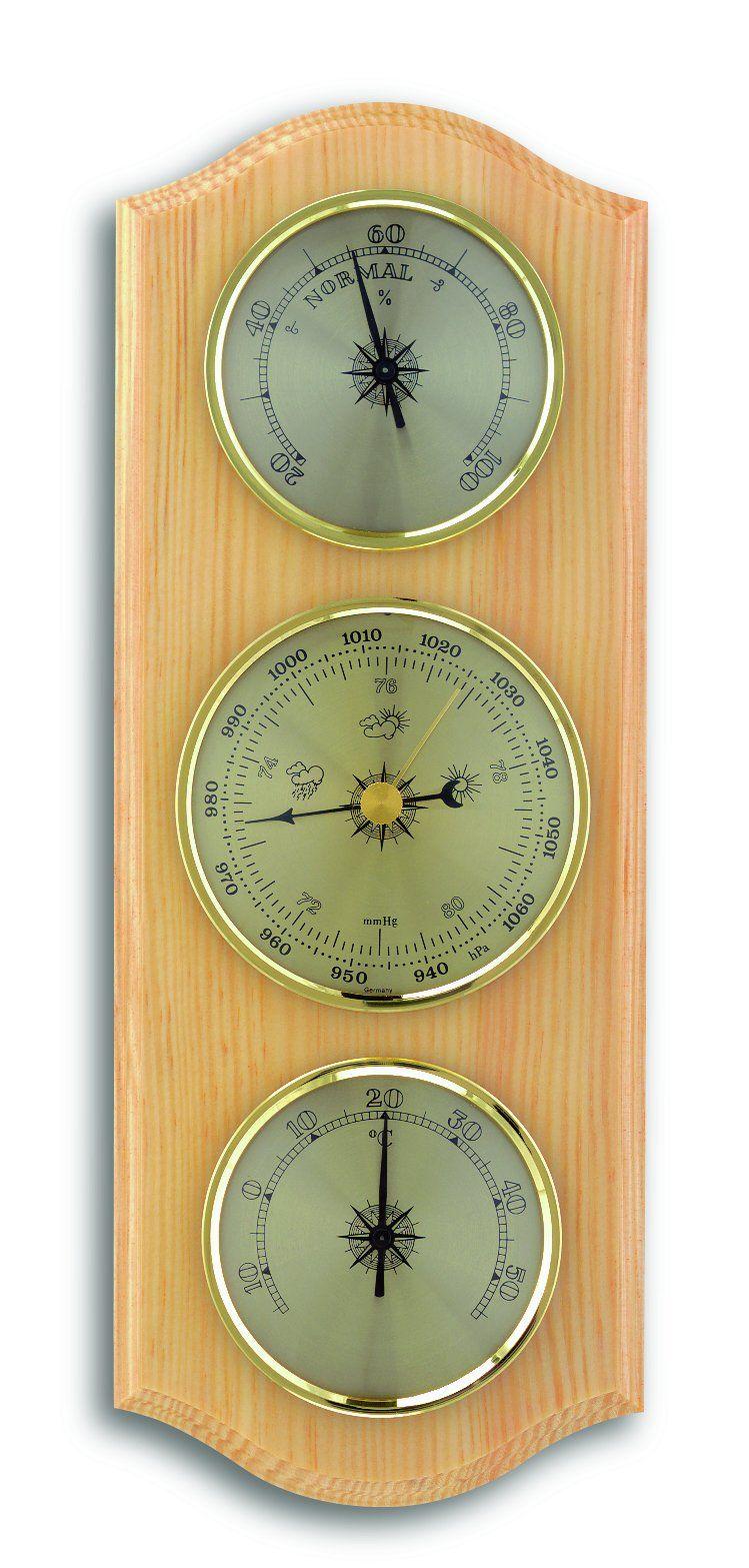 Meteostanice obsahuje barometr, vlhkoměr a teploměr - přístroje jsou o průměru 70 mm (teploměr, vlhkoměr) a 81 mm (barometr). Podložka je buková mořena do odstínu borovice.