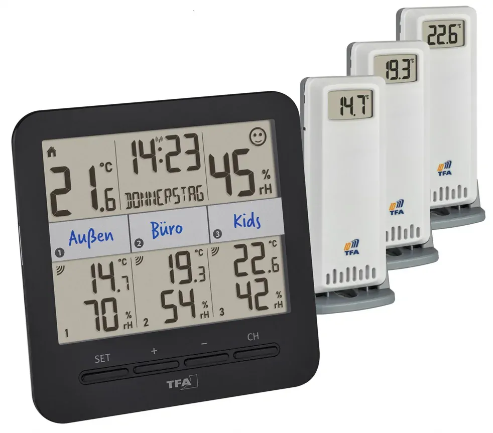 Bezdrátový teploměr s vlhkoměrem a třemi senzory TFA 30.3075.01Skladem1 990 Kč/ ks